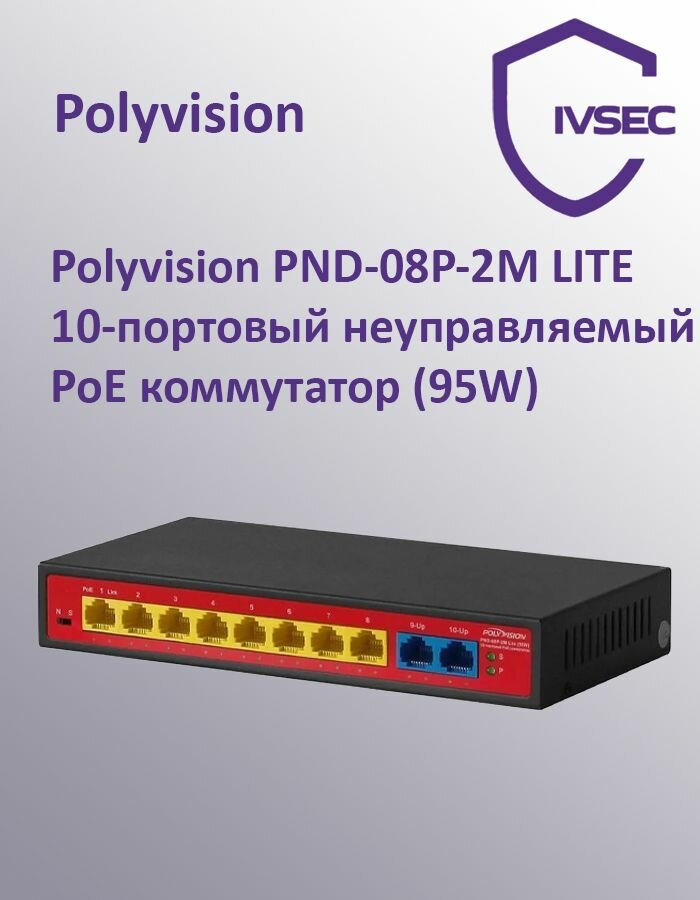 Купить Polyvision PND-08P-2M LITE 10-портовый неуправляемый PoE коммутатор (95W) с доставкой по всей России. Polyvision PND-08P-2M LITE 10-портовый неуправляемый PoE коммутатор (95W): сравнение цен, характеристики, фото, актуальное наличие и цены.