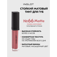Тинт для губ INGLOT HD Lip Tint Matte №66, матовый стойкий, бархатный финиш, не сушит, насыщенный цвет 5,5 мл: сравнение цен, характеристики, фото, актуальное наличие и цены.
