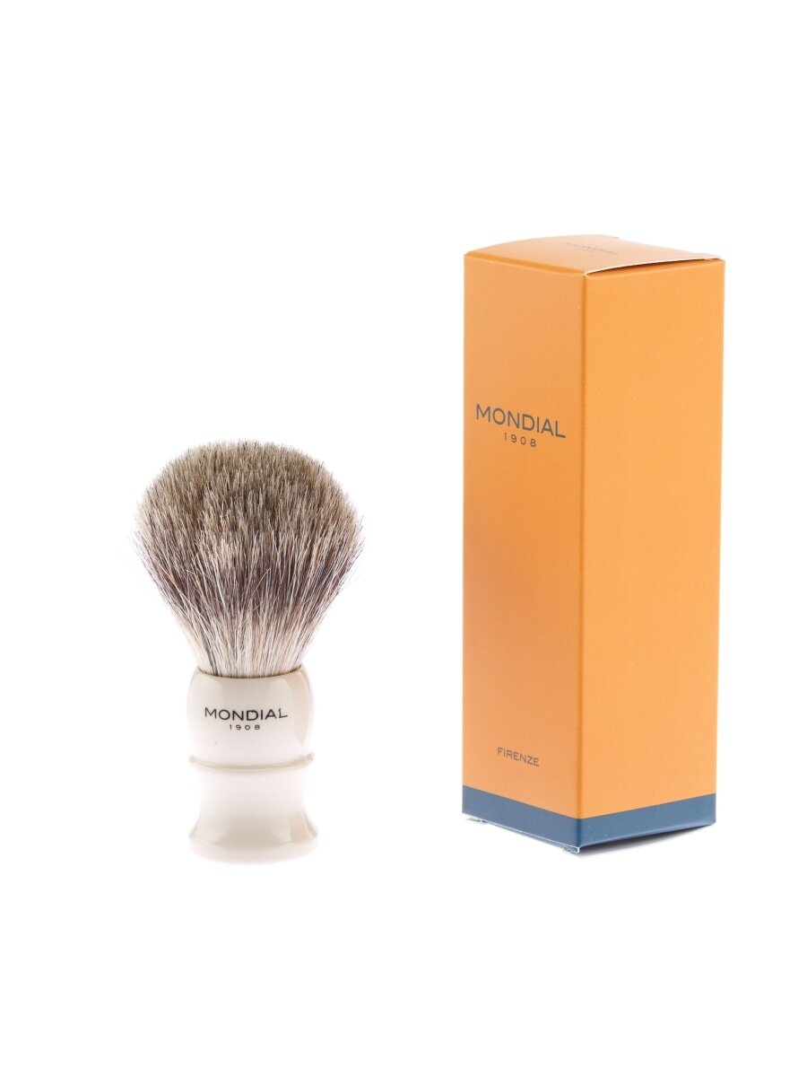 Помазок для бритья Mondial, каучуковая смола, барсучий ворс, рукоять - цвет слоновой кости Ассортимент бритвенных аксессуаров MONDIAL является эталоном для всех видов бритья. Только лучшие материалы обретают форму в опытных руках итальянских мастеров.