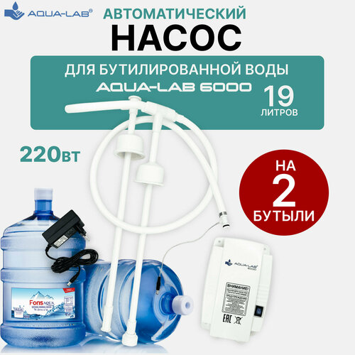 Помпа для воды на 2 бутыли 19 литров электрическая AQUA-LAB 6000 - это надежное и удобное решение для обеспечения непрерывной подачи воды из бутылей объемом 19 литров.