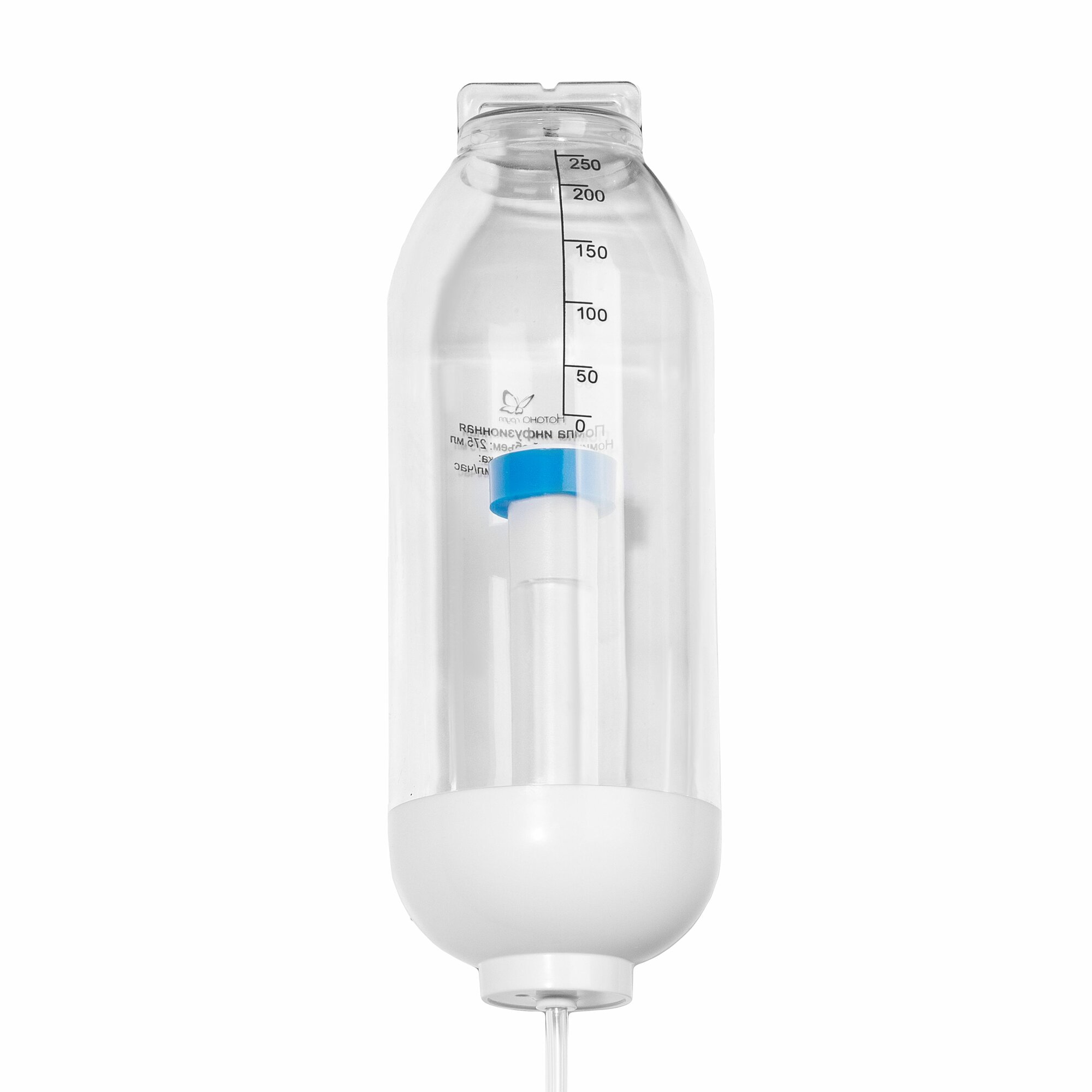 4. Материал корпуса колбы - пластифицированные ПВХ и АВС. Прозрачный, отполированный, медицинского класса. Форма защитного корпуса цилиндрическая. На корпусе нанесена маркировка скорости потока и объема.