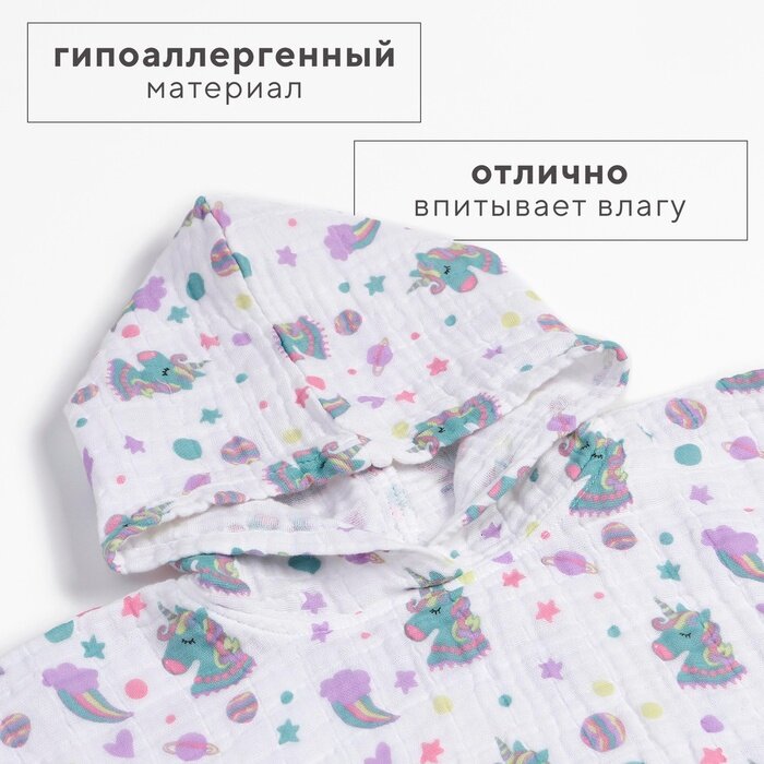 Купить Полотенце — пончо детское LoveLife «Единорог», 100% хлопок, муслиновое, 235 гр/м2 с доставкой по всей России.