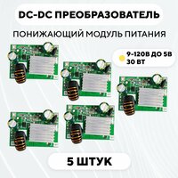 Понижающий модуль питания DC-DC преобразователь, 9-120 В до 5 В (5V 3A, комплект, 5 шт.): сравнение цен, характеристики, фото, актуальное наличие и цены.