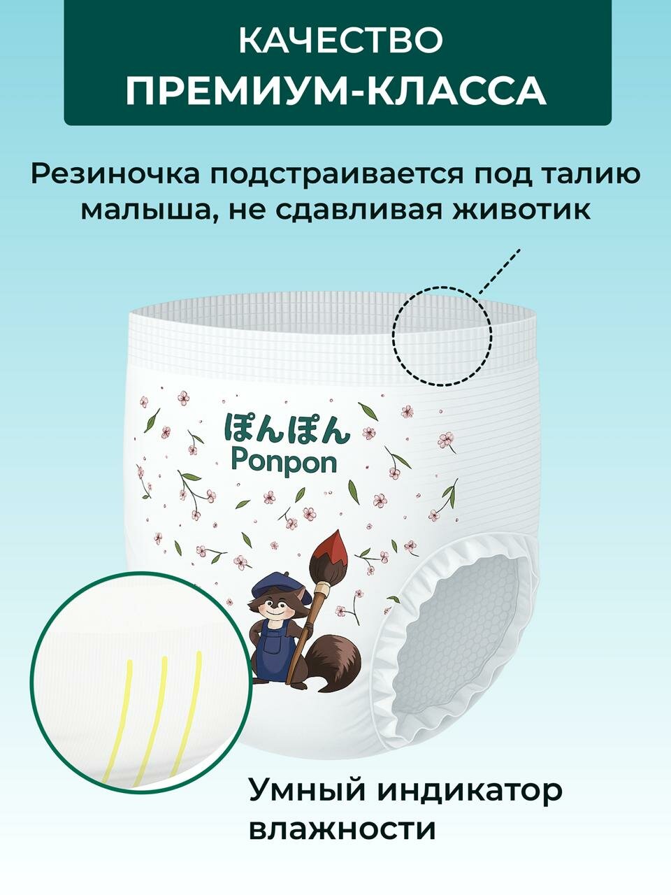 Наши премиальные подгузники японского качества — это высшее качество и забота о вашем малыше! Благодаря инновационной системе защиты от протечек они надежно удерживают влагу до 12 часов, обеспечивая сухость и комфорт. Умный индикатор влажности подскажет, когда пора сменить подгузник, избавляя вас от лишних беспокойств. Невероятно мягкий материал, нежнее хлопка на 30%, ласкает кожу малыша, позволяя ей дышать и предотвращая раздражения. Анатомичный дизайн с эластичными боковинками обеспечивает идеальную посадку и свободу движений, чтобы ваш малыш мог активно познавать мир. Наши подгузники гипоаллергенны и не содержат отдушек, латекса и хлора — идеально подходят даже для самой чувствительной кожи. Подарите вашему ребенку нежность и комфорт японского качества каждый день!