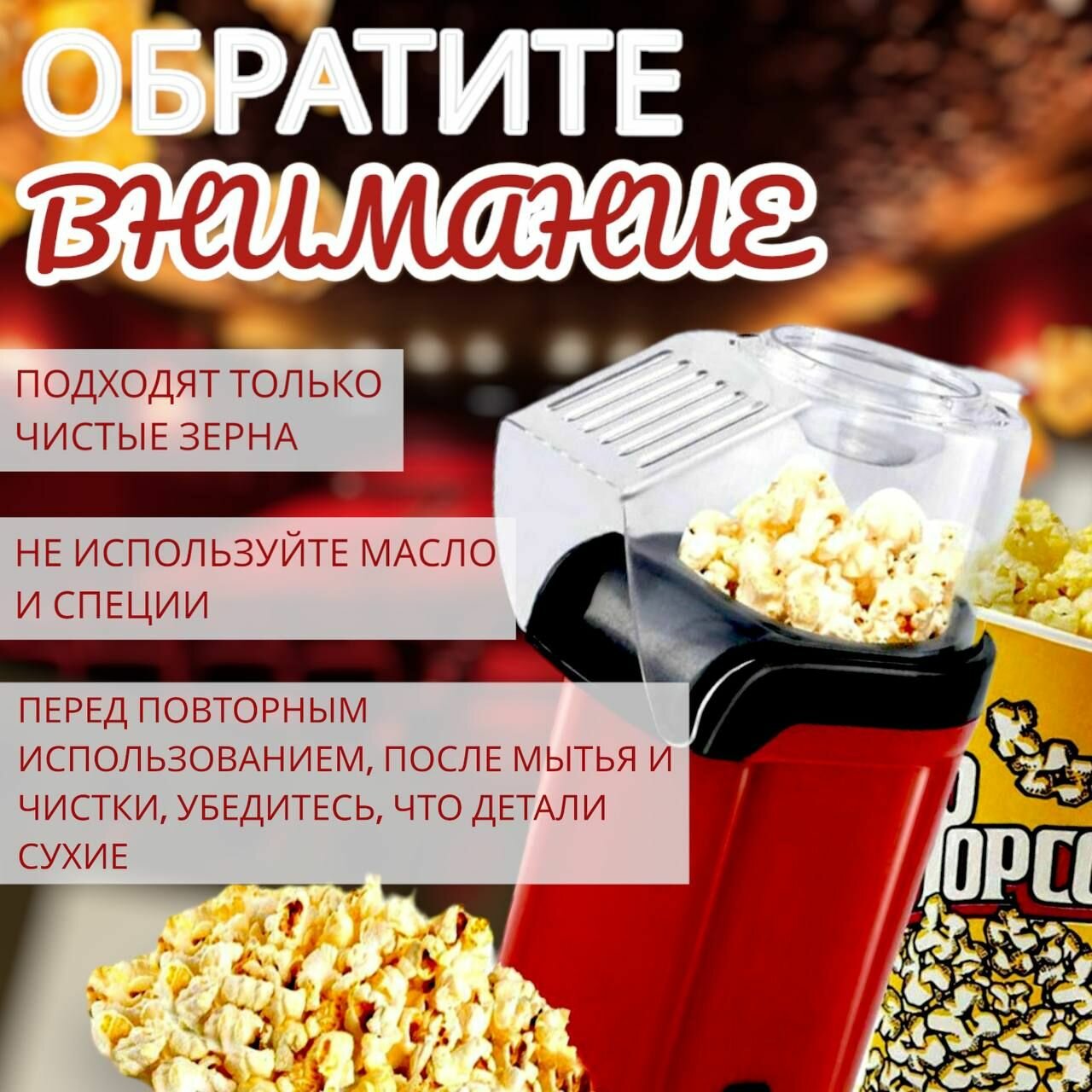Попкорница, аппарат для приготовления попкорна дома, станет незаменимым помощником при проведении вечеров с друзьями или семейных праздников. Благодаря этому попкорн мейкеру вы сможете насладиться ароматом свежего попкорна, приготовленного в уютной обстановке своего дома. Никакого масла не требуется! Просто добавьте зерна кукурузы в попкорницу и включите ее. За несколько минут вы получите хрустящий и аппетитный попкорн. Приготовление попкорна дома станет увлекательным процессом, который можно превратить в настоящий ритуал. Вы сможете экспериментировать с различными добавками и приправами, чтобы создать уникальный вкус.