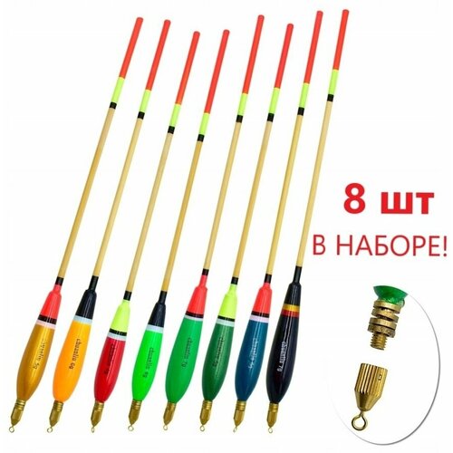 Набор огруженных поплавков для дальнего заброса. 8 штук в наборе! Отгрузка поплавка регулируется грузами-шайбами, которые входят в комплект. Благодаря стрелообразной форме во время заброса поплавок выравнивается в полете и под правильным углом входит в воду. Так как заброс возможен на расстояния до 80 метров, то поплавок будет отчетливо виден и на таком расстоянии, если он выбран достаточно длинныи. Рекомендовано профессиональными рыболовами!