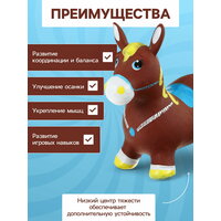 Попрыгун станет любимой игрушкой вашего малыша. На нём можно сидеть как на стульчике, просматривать мультфильмы и заниматься любимым досугом. За ушки или рожки ребёнок будет держаться и резво прыгать по комнате. Так он выплеснет энергию, укрепит мышцы ног, спины и рук.