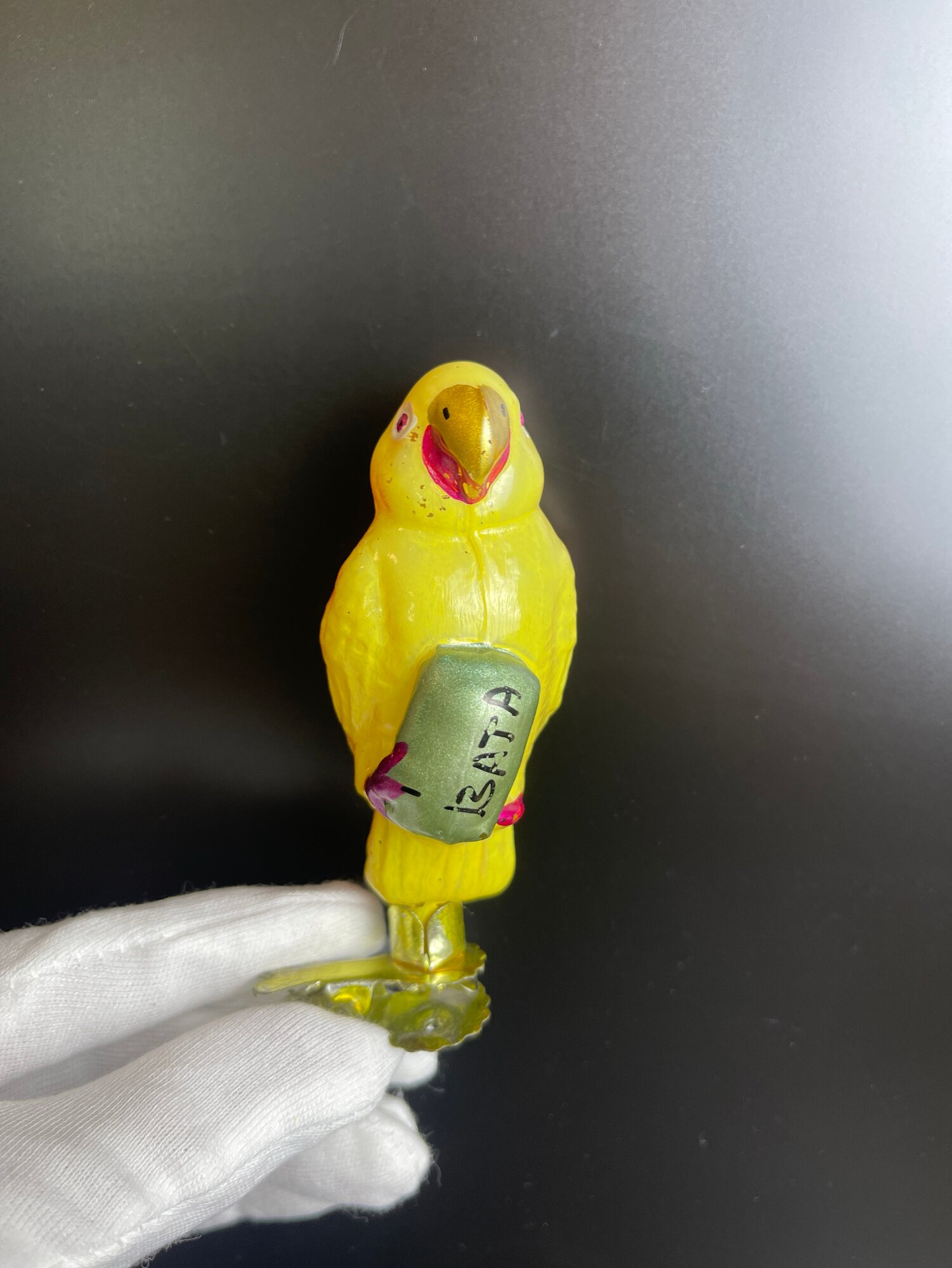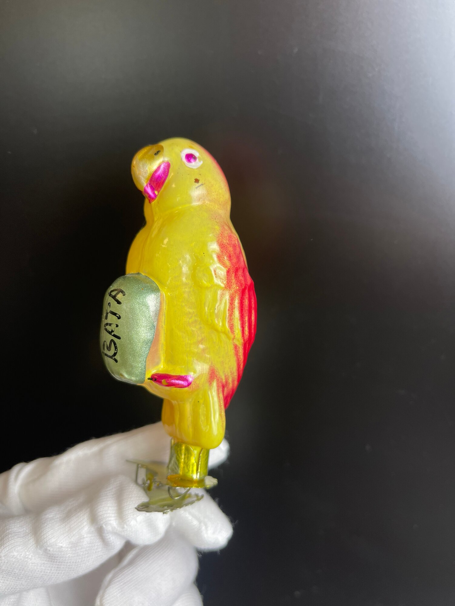 Купить Попугай Карудо с ватой. Сказка «Доктор Айболит» Ёлочная игрушка СССР на прищепке. стекло. 1950 гг. с доставкой по всей России.