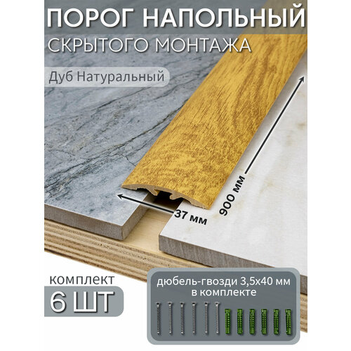 Купить Порог напольный со скрытым креплением 900х37 мм 6 шт ПВХ, цвет: Дуб Натуральный с доставкой по всей России. Порог напольный со скрытым креплением 900х37 мм 6 шт ПВХ, цвет: Дуб Натуральный: сравнение цен, характеристики, фото, актуальное наличие и цены.