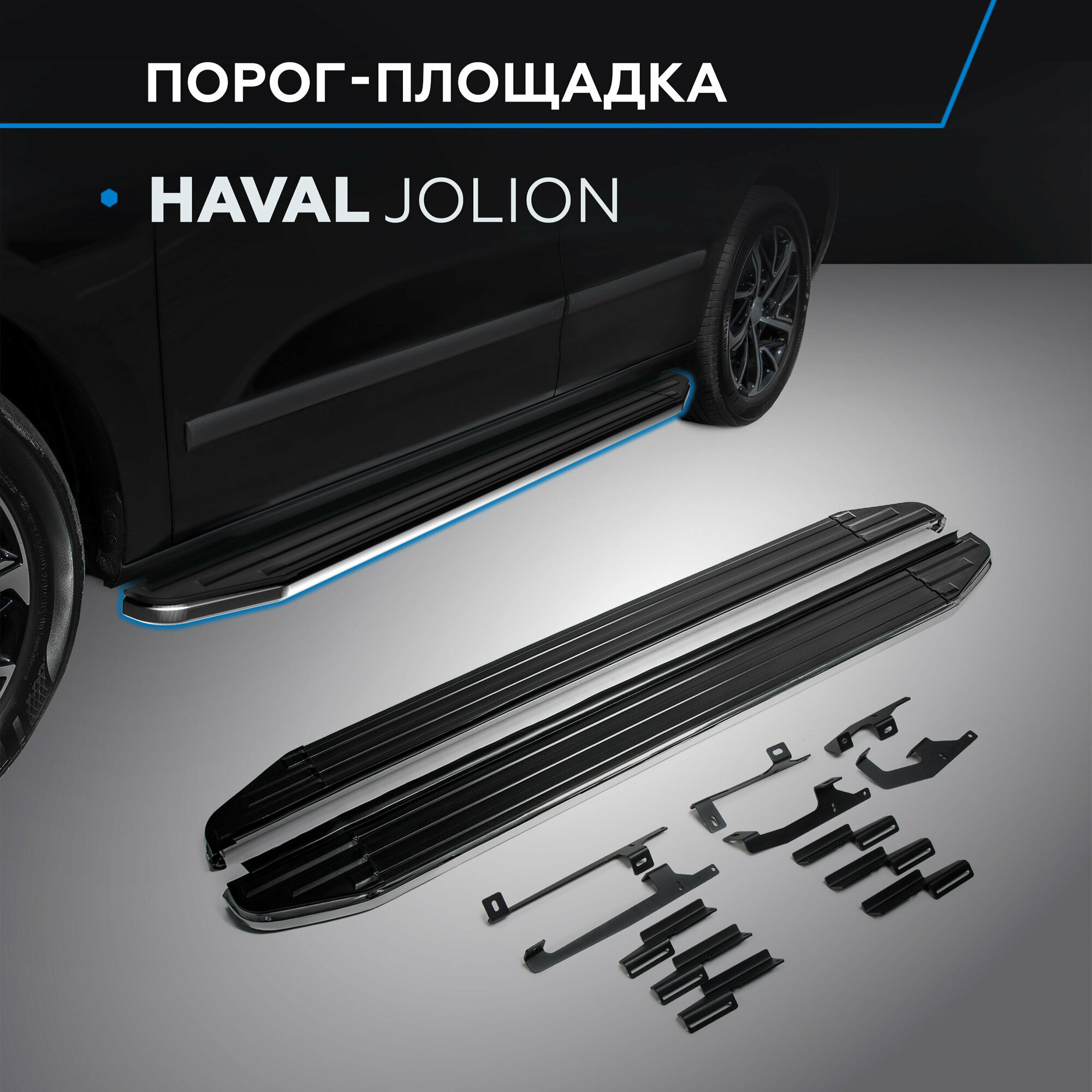 Пороги на автомобиль «Premium» Rival для Haval Jolion 2021-н. в, 180 см, 2 шт, алюминий, A180ALP.9404.1: сравнение цен, характеристики, фото, актуальное наличие и цены.