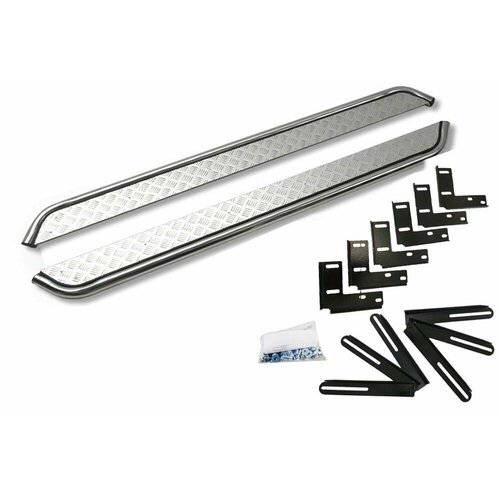 Пороги подножки нержавеющие с дюралевой площадкой для Mitsubishi Pajero 4 (Митсубиси Паджеро 4) с крепежом: сравнение цен, характеристики, фото, актуальное наличие и цены.