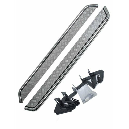 Пороги подножки нержавеющие с дюралевой площадкой для Mitsubishi Pajero Sport 1, Montero Sport (Митсубиси Паджеро Спорт 1, Монтеро Спорт) с крепежом: сравнение цен, характеристики, фото, актуальное наличие и цены.