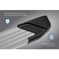 Подножки Silver- выполнены из алюминиевого профиля, рифленая поверхность, по бокам пропиленовые наладки, для защиты от грязи, летящей из под днища автомобиля, предусмотрен алюминиевый кант. Автомобильные пороги обеспечивают удобство посадки в автомобиль, дополняют экстерьер автомобиля, препятствуют повреждению боковых поверхностей машины.