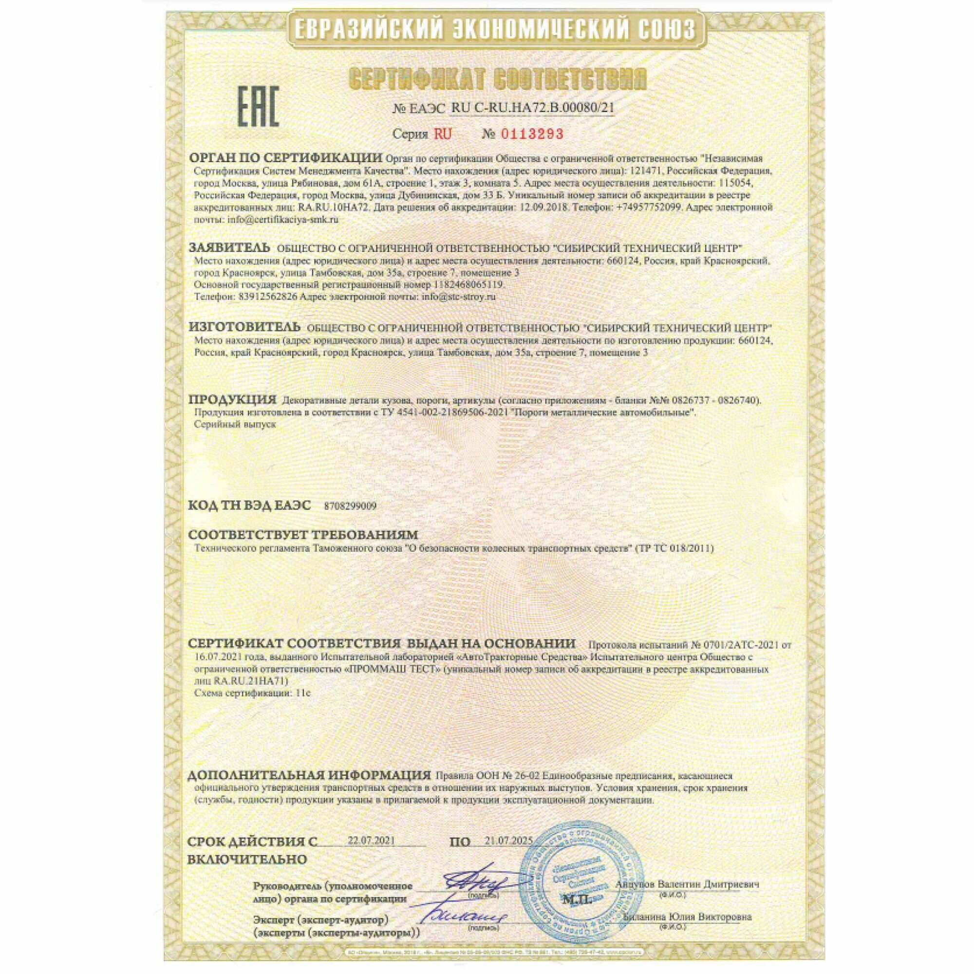 Вся продукция сертифицирована для эксплуатации в Российской Федерации и странах Таможенного союза, в том числе на дорогах общего пользования.