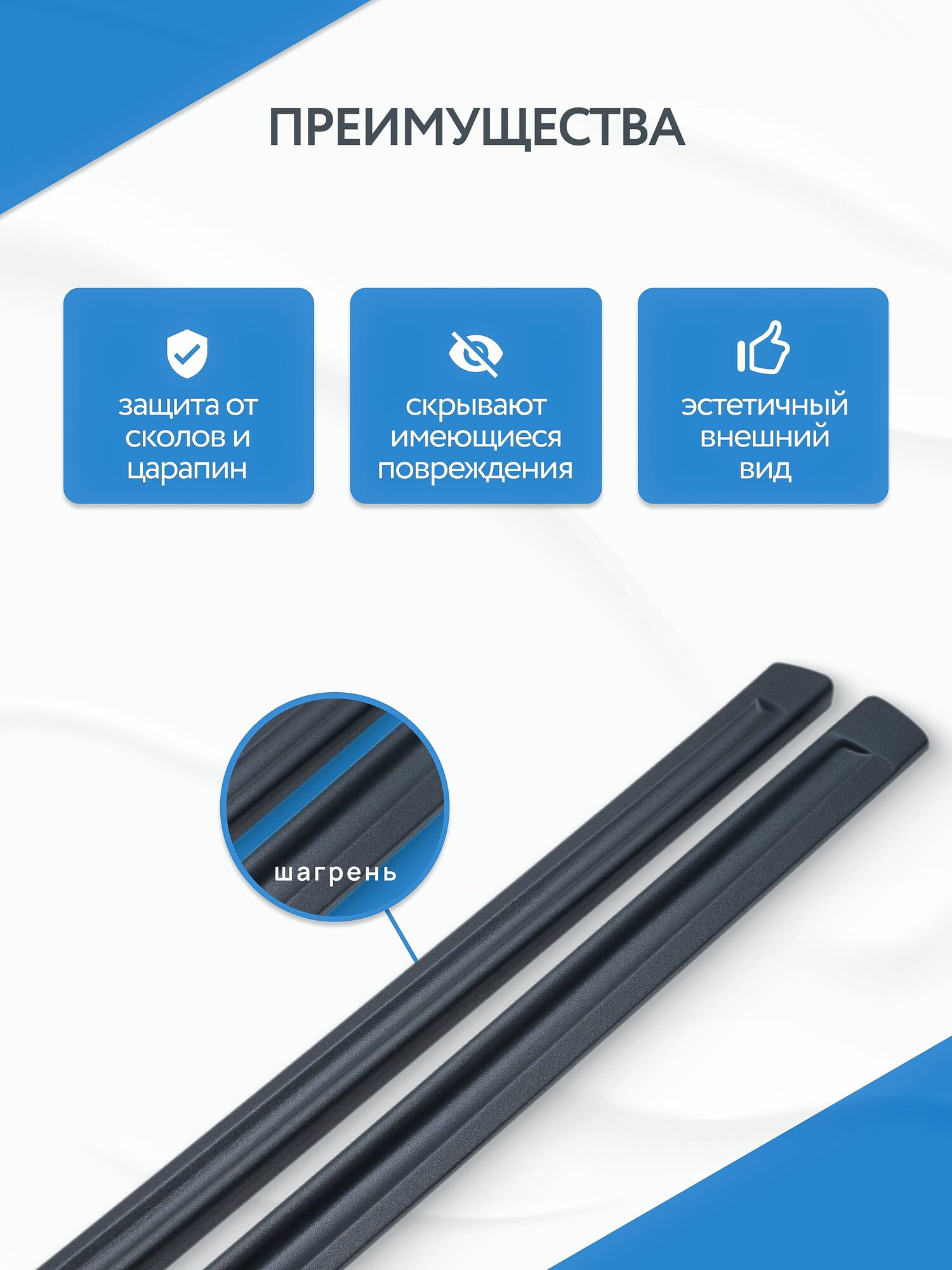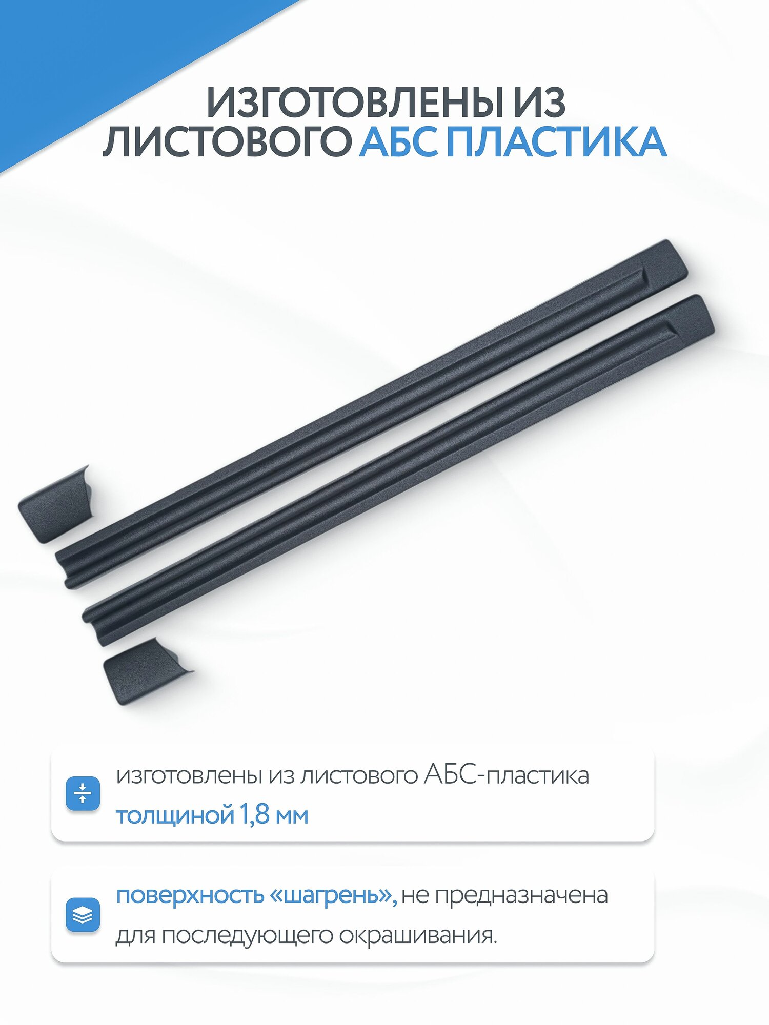 Универсальные декоративные пороги №1 — практичное решение для защиты кузова и стильного оформления вашего автомобиля. Серый цвет с текстурой шагрень гармонично сочетается с любым цветом кузова.