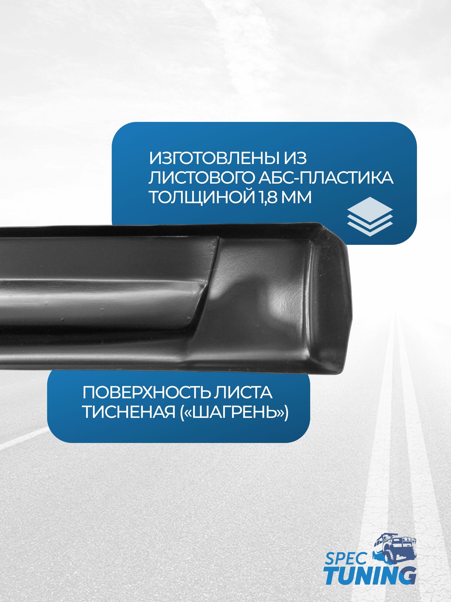 - Качественный материал — АБС-пластик 1,8 мм с противоскользящей поверхностью шагрень