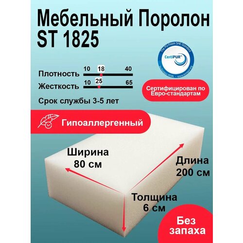 Стандартный пенополиуретан ST1825 - самый экономичный листовой эластичный поролон с широком спектром использования: от мягкой мебели до утепления и рукоделия.