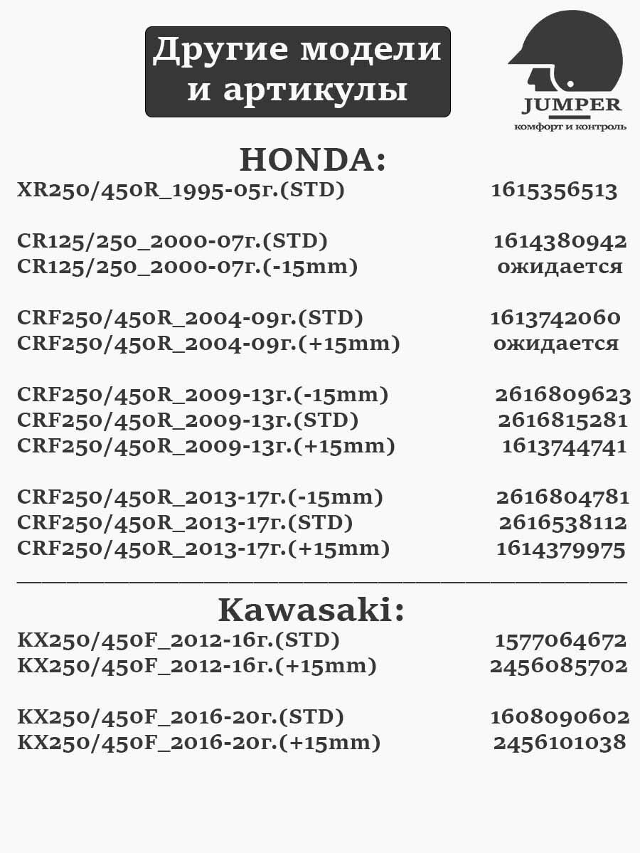 Мы уделяем пристальное внимание технологии и рецептуре пенорезины, твердость и плотность которой, подобраны в условиях длительных кросс и эндуро тренировок. Благодаря этому, удалось добиться максимального комфорта райдера, что способствует увеличению контроля и управляемости мотоцикла.