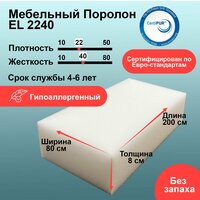 Поролон EL 2240 лист 80x800x2000мм повышенной жесткости, эластичный пенополиуретан 0,8 на 2 м для мебели толщиной 8 см