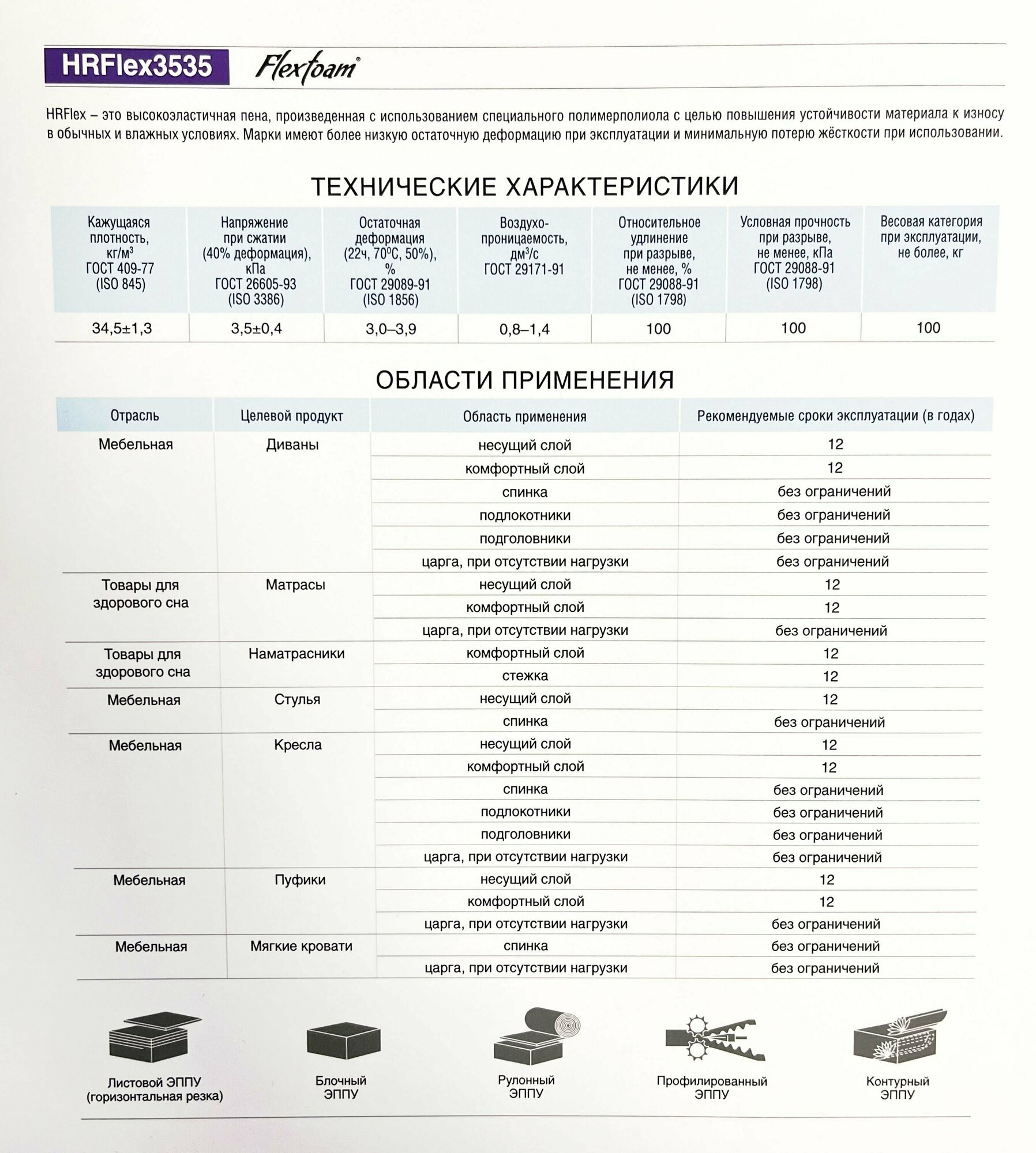 Высокоэластичный поролон повышенной плотности хорошо подходит для изготовления сидений, спинок, подголовников диванов и кресел. Особенная структура пены и высокая несущая способность и отсутствие эффекта "проваливания" позволяет поролону принимать и равномерно распределять любой вес, чем достигается правильная анатомическая поддержка тела и удивительное ощущение комфорта. Используется для мягких матрасов, сидений и спинок мягкой мебели, Можно использовать в производстве комфортных матрасов, в качестве полноценных элементов мягкой мебели, не комбинируя их с другими марками поролона. Повышенная плотность обеспечит долгий срок службы, а благодаря высокой эластичности и поролона вы получите комфортный матрас, топпер или диван.