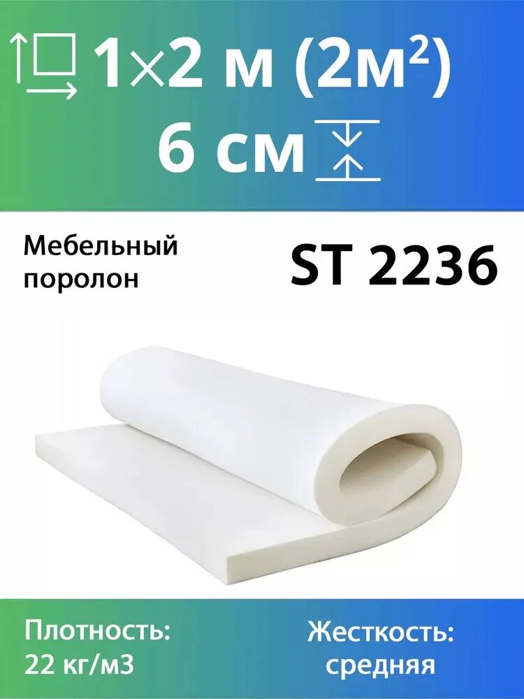 Поролон мебельный марки ST2236 60x1000x2000мм, плотность 22кг/м3: сравнение цен, характеристики, фото, актуальное наличие и цены.