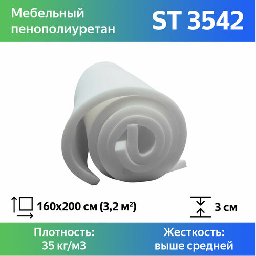Поролон мебельный упругий ST3542 30x1600x2000мм, плотность 35 кг м3, жесткость 42 кПа: сравнение цен, характеристики, фото, актуальное наличие и цены.