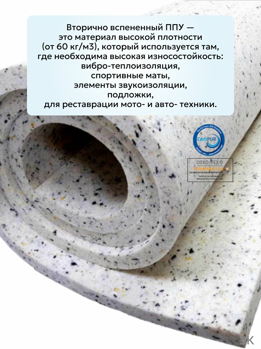 Купить Поролон вторичного вспенивания 60, 100х200 см, плотность 60 кг/м3, пенополиуретан 30 мм для мебели и авто сидений с доставкой по всей России.