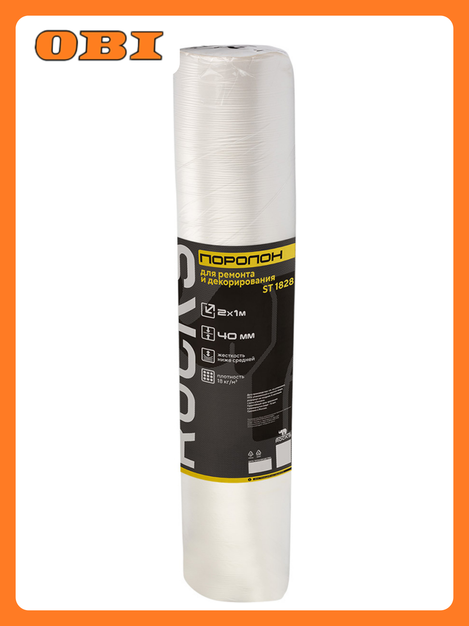 Поролон ROCKS ST1828, 2000x1000x40 мм, рулон, плотность 18 кг/м3