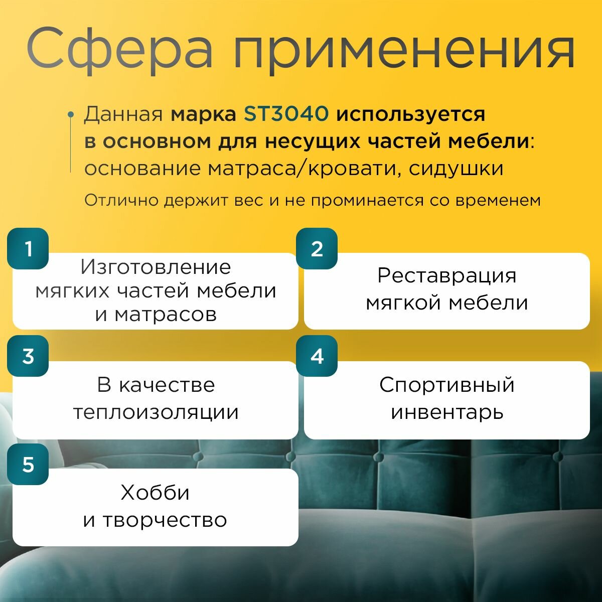 Поролон высокоплотный мебельный эластичный ST3040 800×2000х30 мм (80х200х3 см): сравнение цен, характеристики, фото, актуальное наличие и цены.