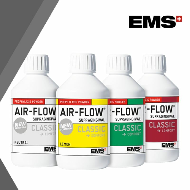 Air-Flow Classic — это профилактический, мелкодисперсный порошок на основе бикарбоната натрия для удаления мягкого и пигментированного зубного налёта, с легким отбеливающим эффектом.