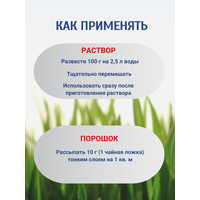 в виде порошка: порошок рассыпать тонким слоем (ок. 10 г на 1 м²) на гнездо и на пути следования муравьев (т.е на муравьиных дорожках), на трещинах, щелях и швах, откуда он будет перенесен в гнездо, уничтожая колонию; в виде раствора: порошок развести в воде, тщательно помешивая, из расчета 100 г на 2,5 л воды, обработку проводить сразу после приготовления раствора; трещины, щели, швы и гнезда муравьев полить приготовленным раствором; также необходимо обработать все пути подхода к муравьиному гнезду; не обрабатывать места (пол, лестницы и т.п.) частого передвижения людей