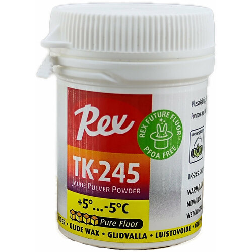 Гоночный лыжный порошок ТК-245 является обновленной версией легендарного ТК-244 может применяться для любого типа снега в широком температурном диапазоне. Наиболее эффективен от умеренно морозной влажной погоды и устоявшегося снега до небольшой оттепели и влажного свежего снега. Температурный диапазон от +5° до -5° Универсальный порошок для переходных температур и всех типов снега, за исключением сильно старого и сухого. Сделано в Финляндии Температура плавления: 180°C. При плавлении порошка будьте аккуратны, не пережгите скользящую поверхность лыжи! Расплавьте порошок несколькими быстрыми движениями пока порошок не потемнеет Обработайте нейлоновой щеткой Снова вплавьте порошок несколькими быстрыми движениями Дайте лыжам остыть Слегка пройдитесь по скользящей поверхности скребком и как следует обработайте щеткой.