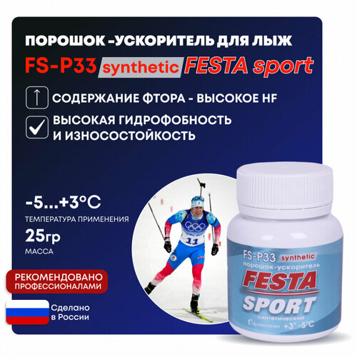 Высокофтористый синтетический порошок – ускоритель Фэста-Спорт FS-P33 для лыж, 25 гр, t (+3-5°С)