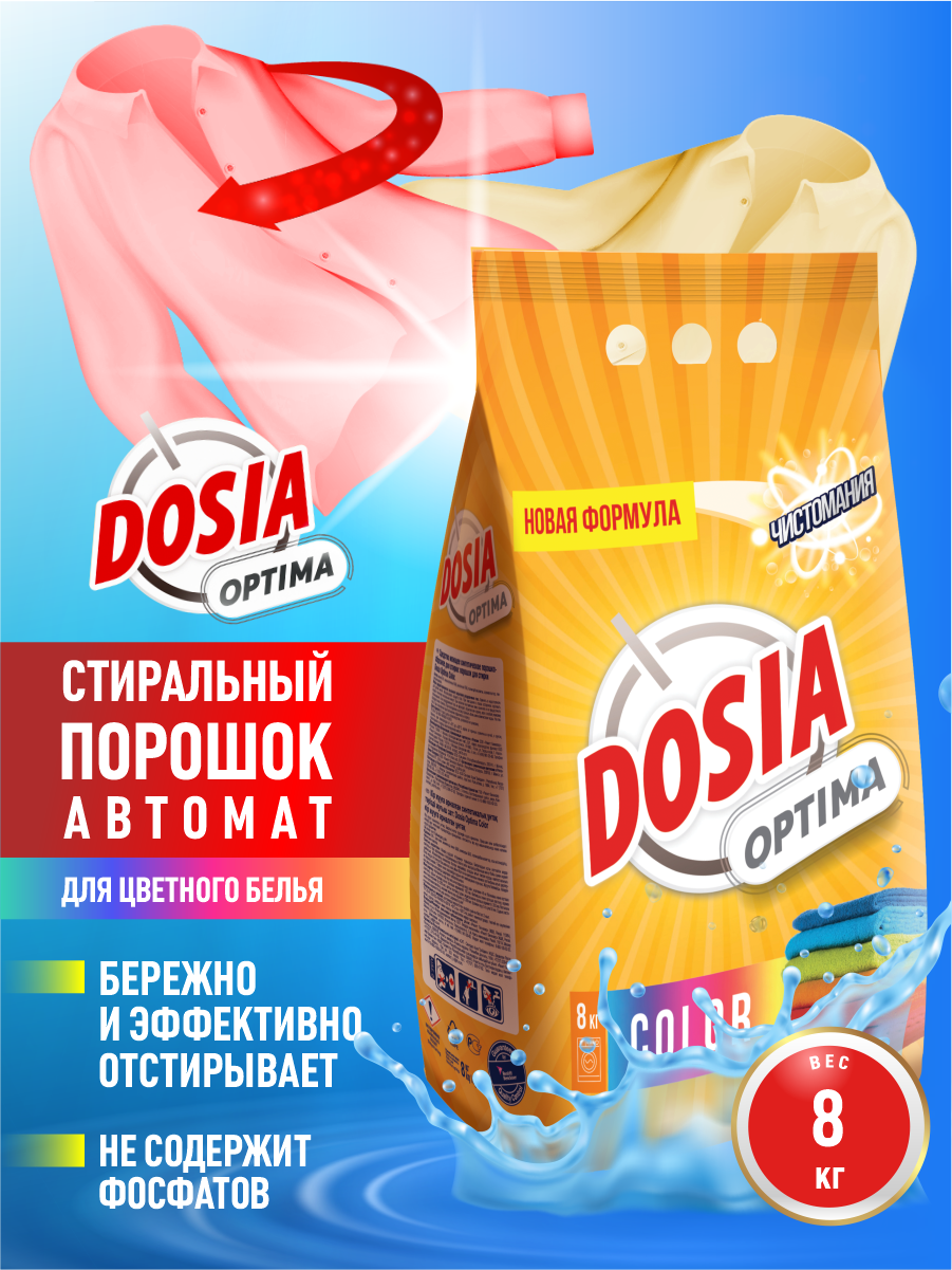 DOSIA OPTIMA COLOR Порошок стиральный 8 кг.: сравнение цен, характеристики, фото, актуальное наличие и цены.