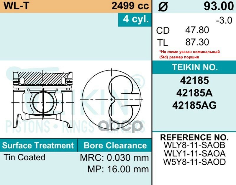 Поршень двигателя без колец TEIKIN арт. 42185ASTD: сравнение цен, характеристики, фото, актуальное наличие и цены.