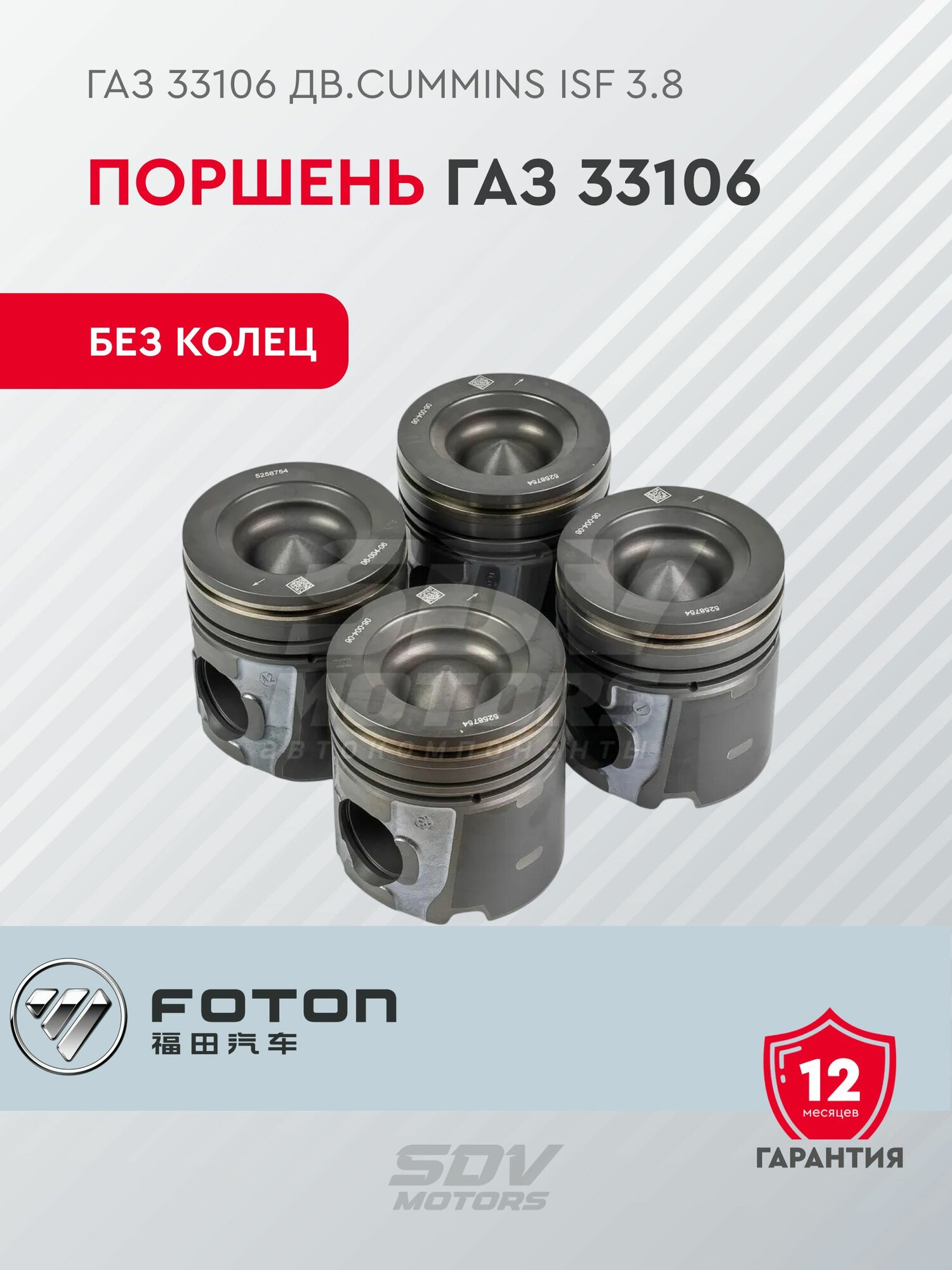 Поршень ГАЗ 33106 дв. Cummins ISF 3.8 без колец