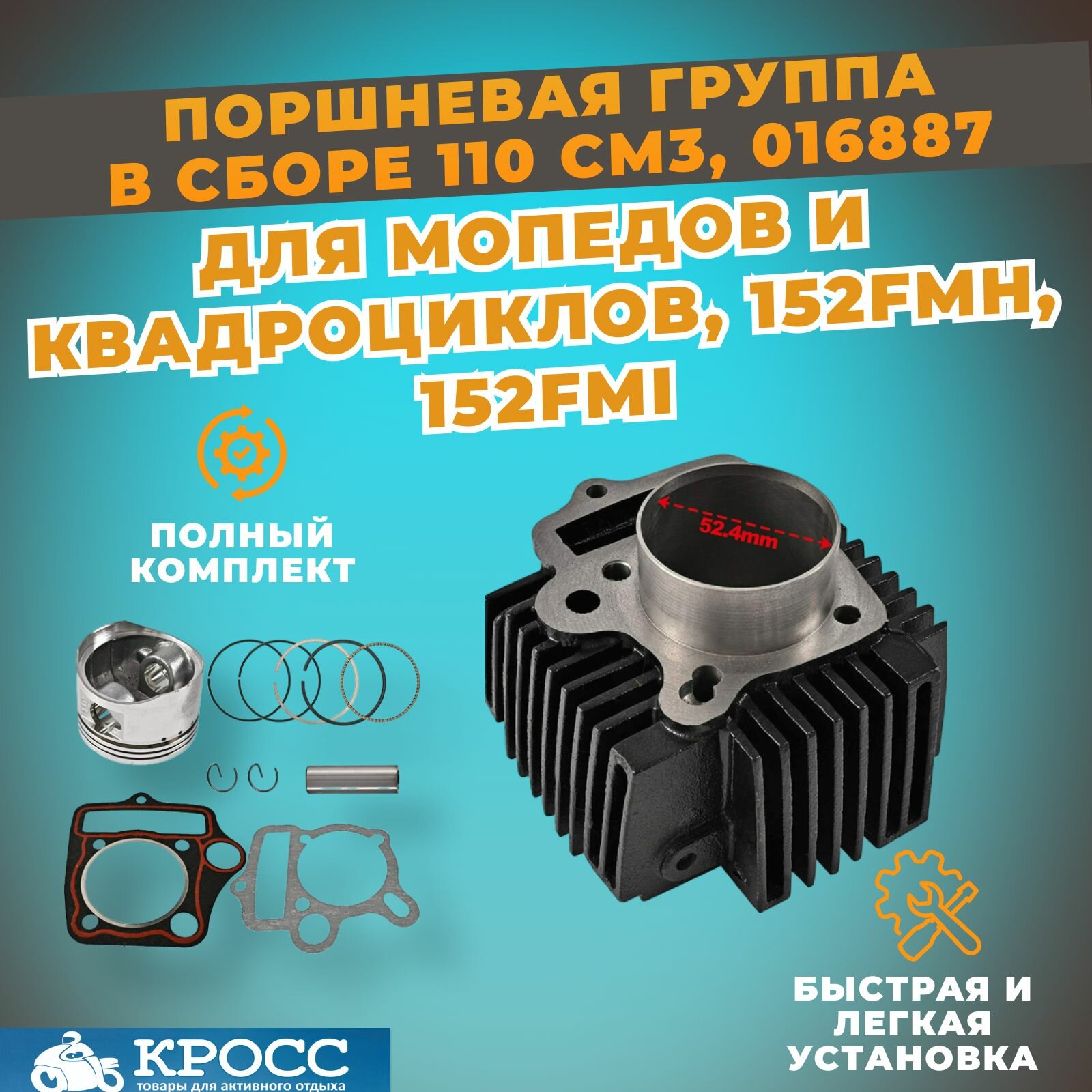 Цилиндро-поршневая группа (ЦПГ) 152FMB 110cc, предназначенная для мопедов, питбайков, квадроциклов с двигателем 152FMB, 152FMH, 152 FMI (таких как Альфа, Орион, Дельта, Актив, Racer, Motoland и другие), является надежным и эффективным компонентом для вашего транспортного средства.