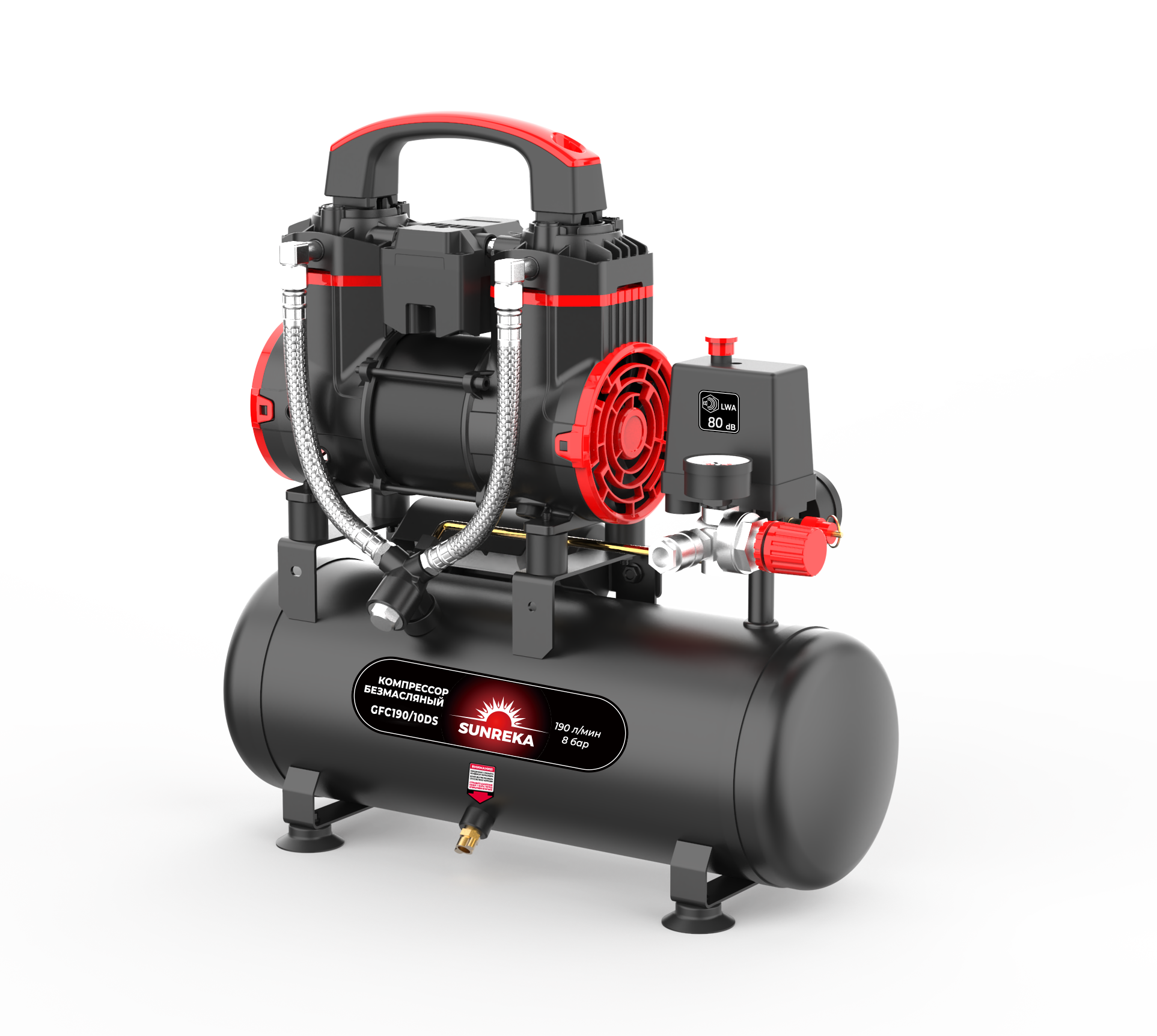Поршневой Безмасляный компрессор тихий SUNREKA GFC190/10DS (900Вт ,190 л/мин , 10л): сравнение цен, характеристики, фото, актуальное наличие и цены.