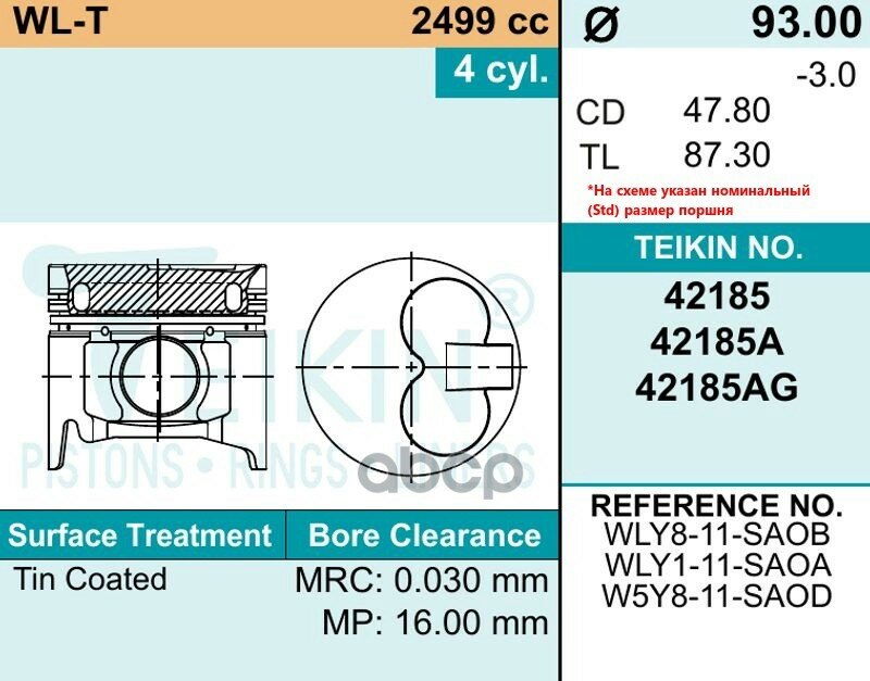 Поршни (к-т 4шт) STD WL-T MPV ’95- 93/2,5/2/3 d=32 42185A TEIKIN арт. 42185 STD: сравнение цен, характеристики, фото, актуальное наличие и цены.