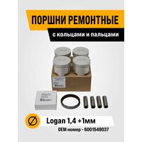 Поршни ремонтные с кольцами и пальцами Renault Logan 1,4 8кл +1,0мм 1 к-т 4 шт .