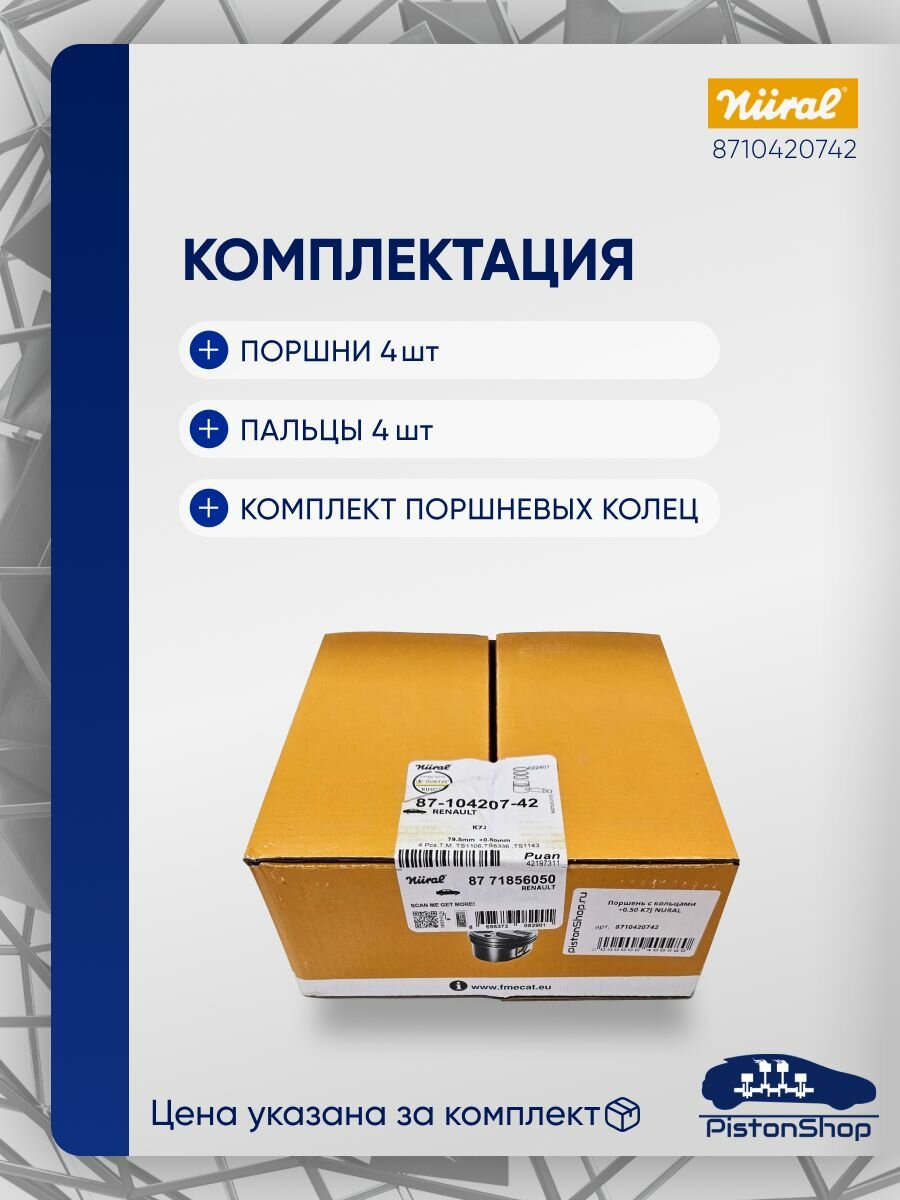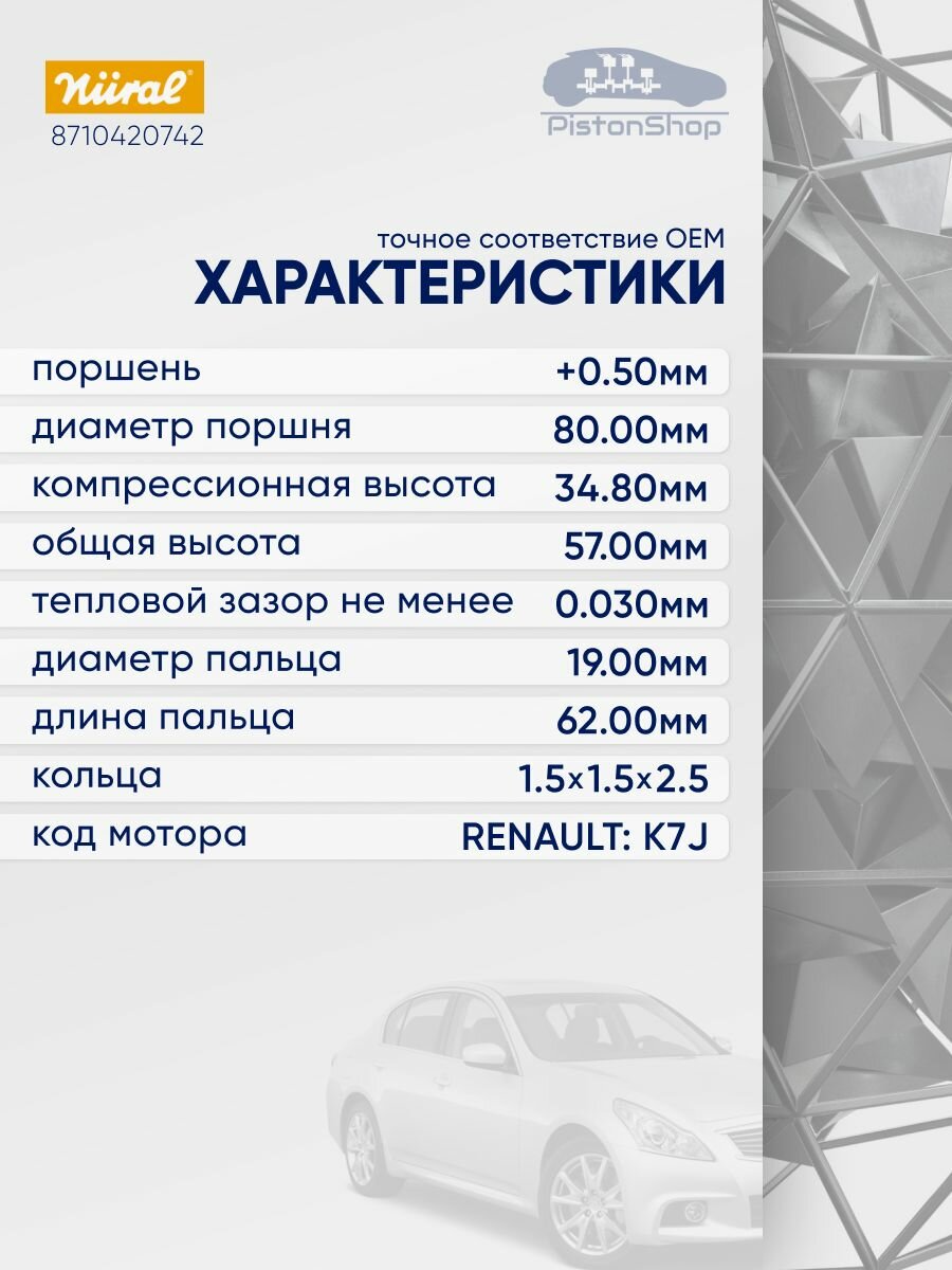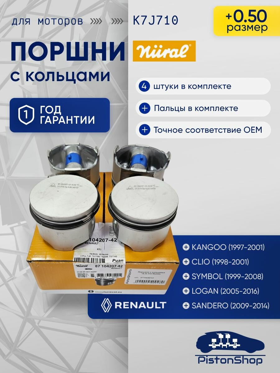 Поршни с кольцами +0.50 K7J nural: сравнение цен, характеристики, фото, актуальное наличие и цены.