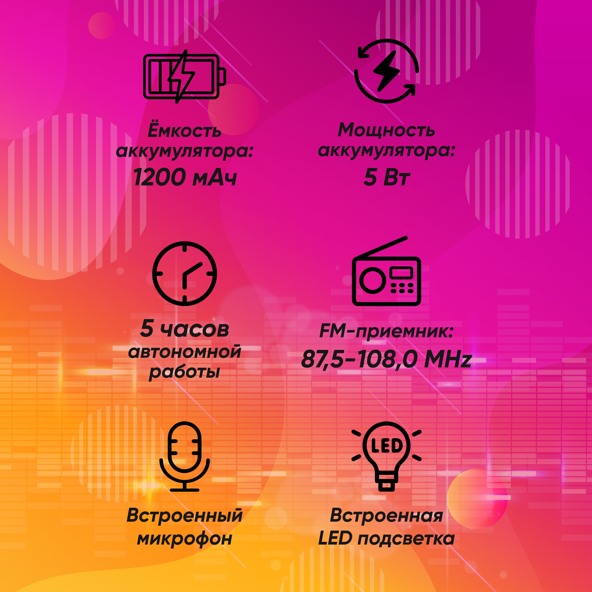 FM-радио, встроенный микрофон (функция HandsFree), режим Power Bank, световые эффекты