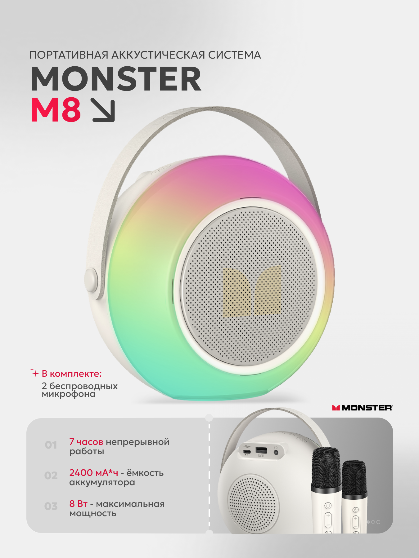 Купить Портативная акустическая система MONSTER M8 (караоке), белая с доставкой по всей России. Портативная акустическая система MONSTER M8 (караоке), белая: сравнение цен, характеристики, фото, актуальное наличие и цены.