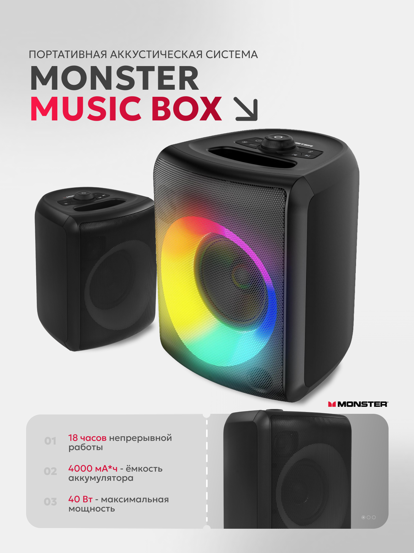 Купить Портативная акустическая система MONSTER Musicbox, чёрная (Black) с доставкой по всей России. Портативная акустическая система MONSTER Musicbox, чёрная (Black): сравнение цен, характеристики, фото, актуальное наличие и цены.