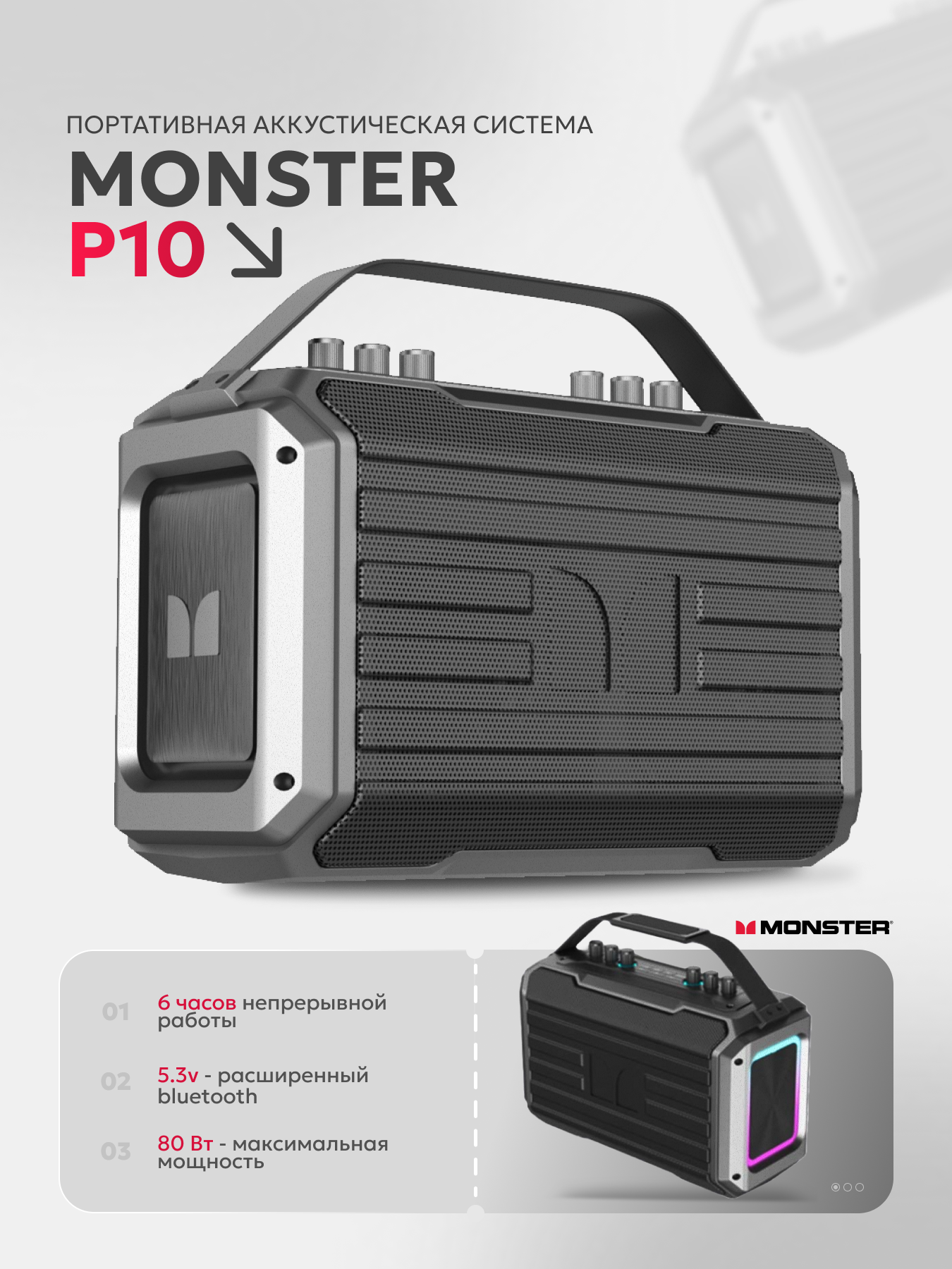 Купить Портативная акустическая система MONSTER Р10, чёрная / Black / с доставкой по всей России. Портативная акустическая система MONSTER Р10, чёрная / Black /: сравнение цен, характеристики, фото, актуальное наличие и цены.