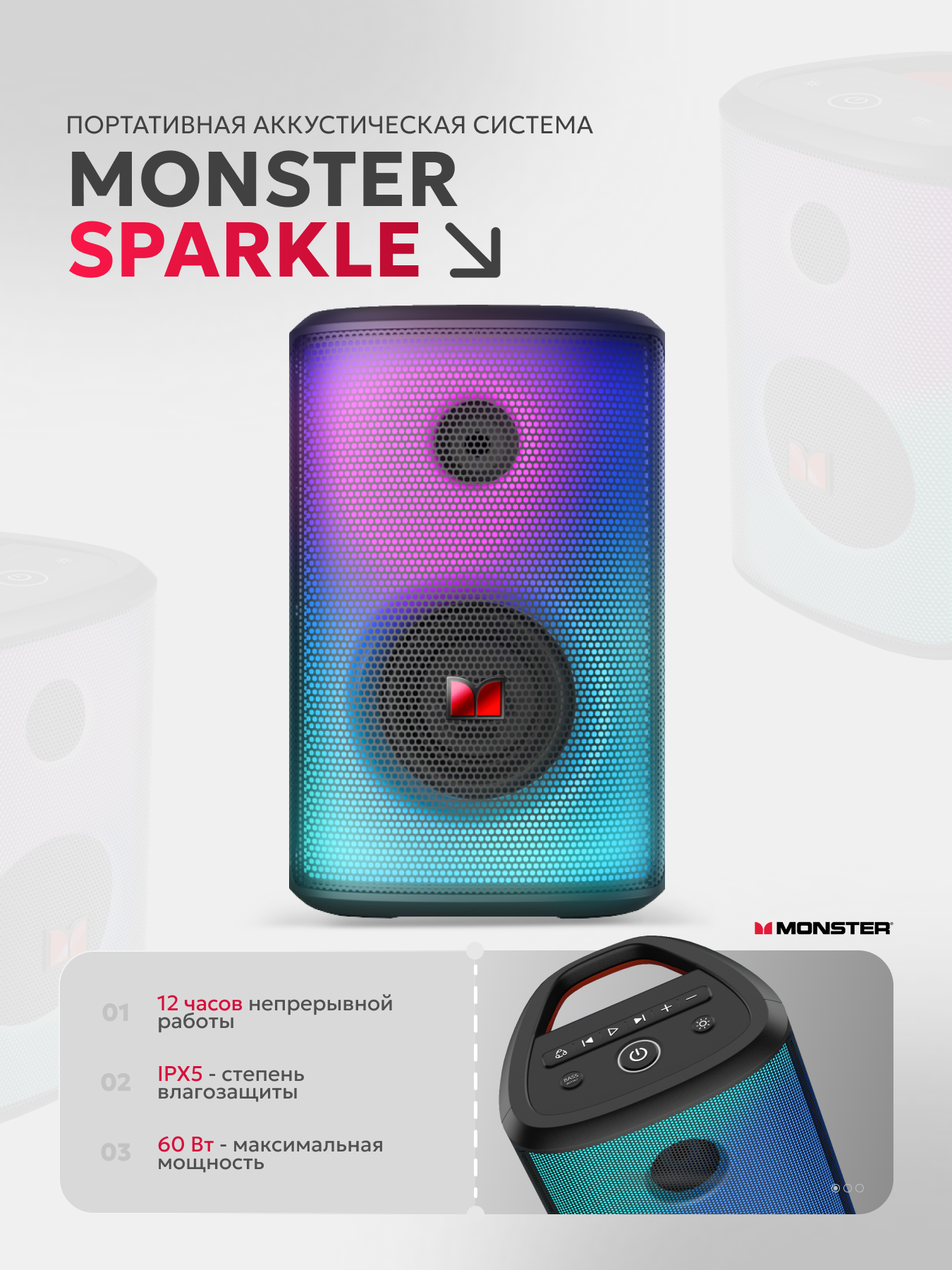 Портативная акустическая система Monster Sparkle MS22119 (129801-02) черный: сравнение цен, характеристики, фото, актуальное наличие и цены.