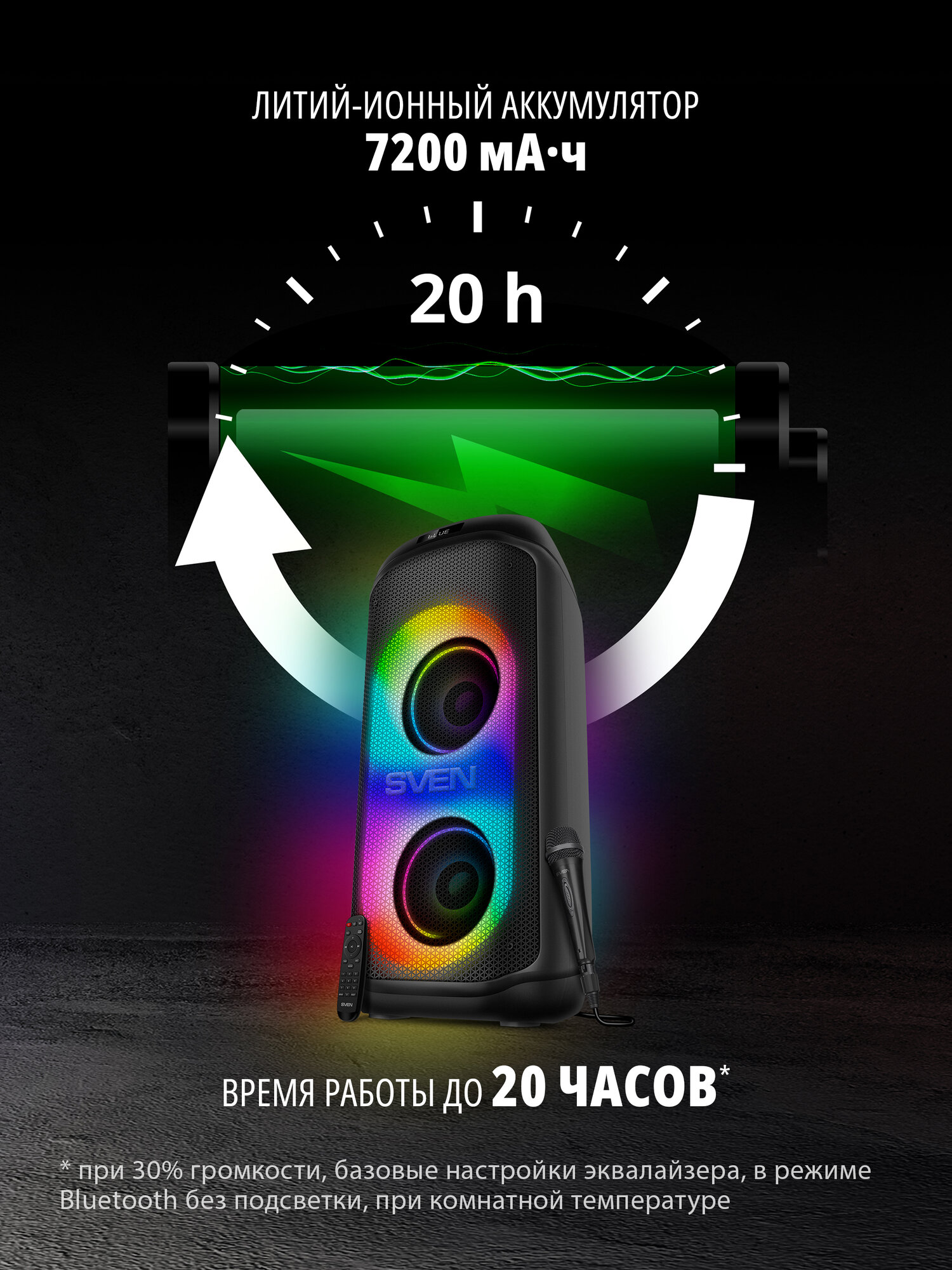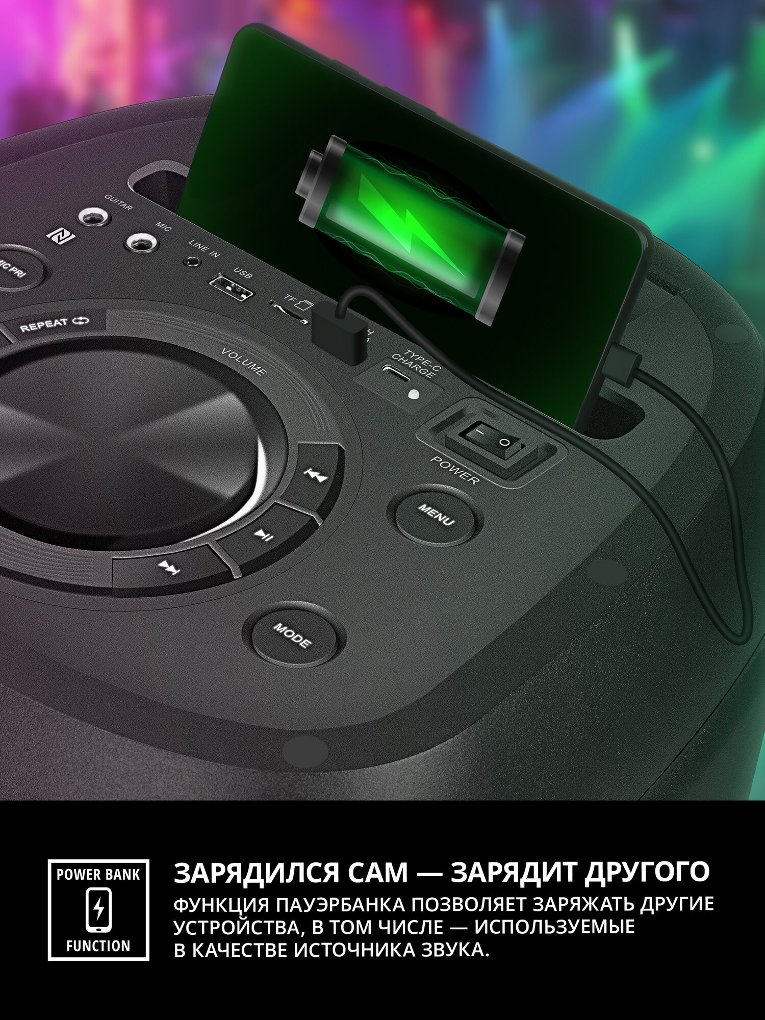 | Особенности | FM-радио, дисплей, караоке, поддержка microSD, режим Power Bank, световые эффекты |