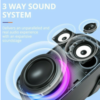 | Особенности | вибродинамик, влагозащищенный корпус, встроенный микрофон (функция HandsFree), караоке, поддержка microSD, режим Power Bank, ремешок, ручка, световые эффекты |