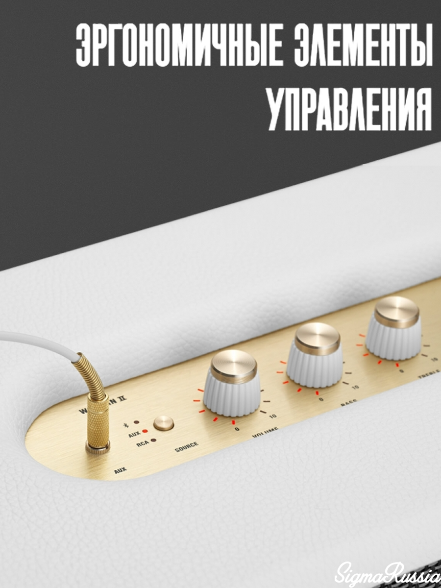 Входы AUX и RCA позволяют подключать колонку к различным источникам звука, таким как телевизор, смартфон или ноутбук.