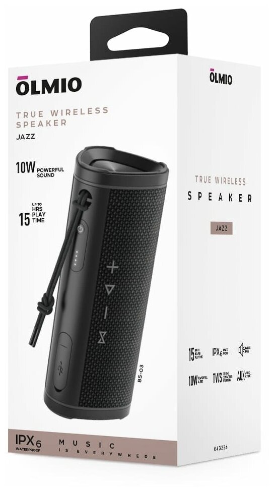 Портативная Bluetooth-колонка Olmio Jazz BS-03, 10Вт, влагозащита IPX6, FM-радио: сравнение цен, характеристики, фото, актуальное наличие и цены.